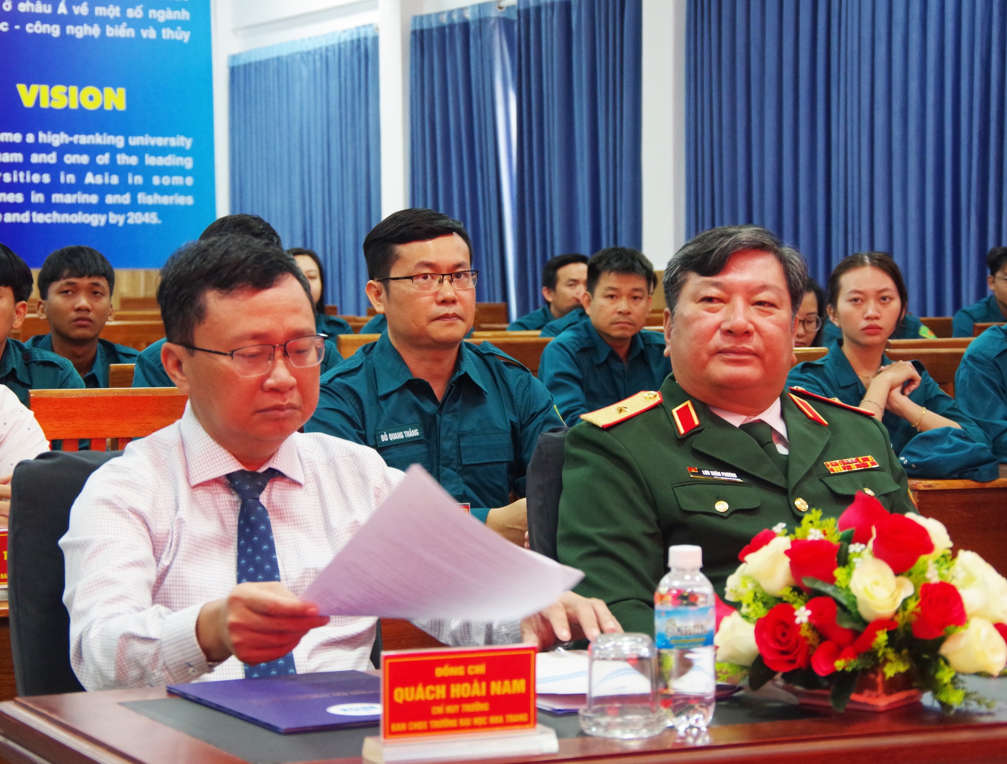 Tham dự buổi lễ có Thiếu tướng Lưu Xuân Phương – Phó Tham mưu trưởng Quân khu 5; Thượng tá Huỳnh Văn Toàn – Phó Chỉ huy trưởng kiêm Tham mưu trưởng Bộ Chỉ huy Quân sự tỉnh Khánh Hòa; cùng đại diện lãnh đạo Trường Đại học Nha Trang và các đơn vị liên quan.