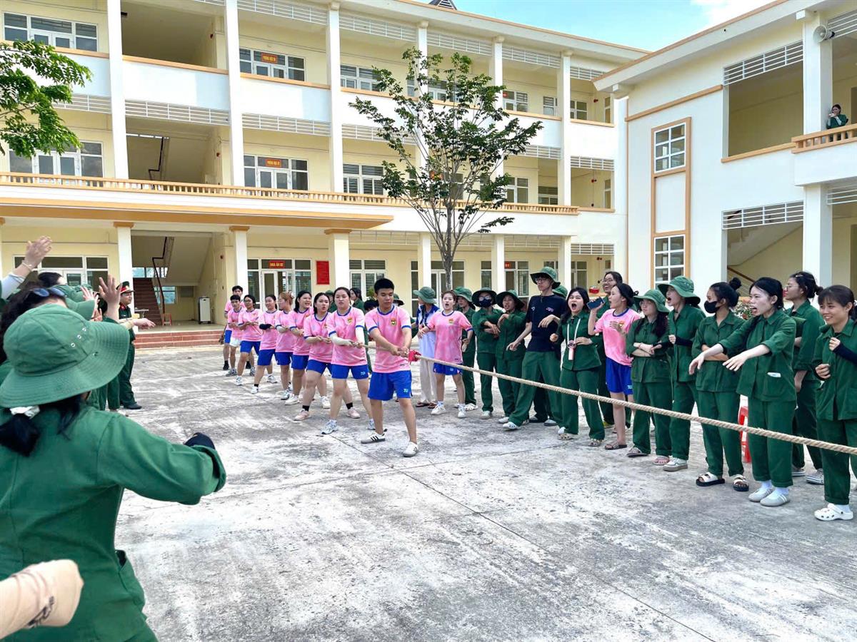 Sinh viên tham gia hoạt động kéo co trong giờ sinh hoạt tập thể tại Trung tâm.